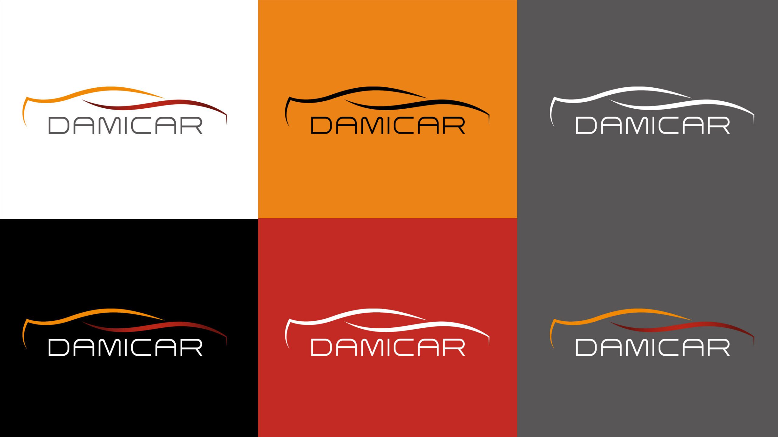 Rediseño del logotipo de Damicar. Concesionario de coches de segunda mano que opera desde el año 2004 en Barcelona y desde el 2019 en Zaragoza, España. Los colores, rojo, naranja y gris, son los colores que siempre han representado a la empresa. El proceso de trabajo fue metódico y minucioso, explorando todas las posibilidades formales para mejorar la consistencia y el dinamismo del logotipo sin perder la notoriedad y el reconocimiento de marca asociado al original. Con el nuevo logo, Damicar ha ampliado su catálogo de servicios, donde ha incluido seguros de coche y gestoría de trámites legales con la DGT de España.